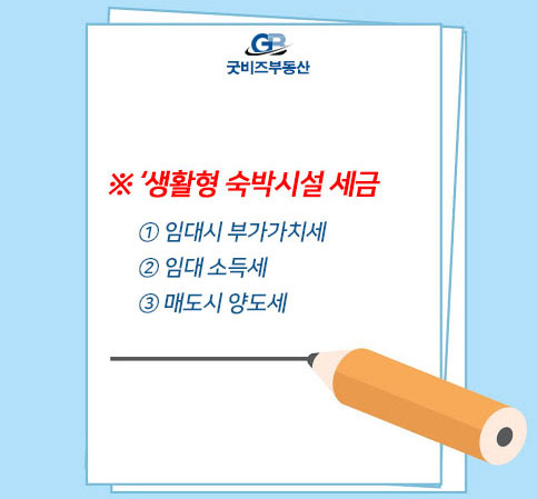 생활형 숙박시설은 종합부동산세가 면제되고 양도소득세 중과대상에서도 제외됩니다. 하지만 주택으로 보는가 아닌가에 따라 세법 적용이 달라집니다. 주택으로 취급받게 되어 주택 수에 포함되면 양도세, 종부세 등 주택관련 세금이 적용이 되고, 분양받았을 때 환급받았던 부가세도 다시 세무서에 납부해야 합니다.