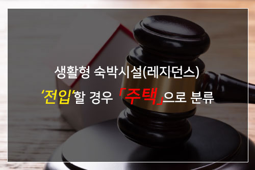 대부분 생활형 숙박시설(레지던스)를 분양하는 업체는 투자와 주거 두 마리 토끼를 한 번에 잡을 수 있는 상품으로 홍보하고 있지만, 주택법과 세법상의 분명한 차이가 있기 때문에 투자 시 꼼꼼히 따져 봐야 할 것입니다.